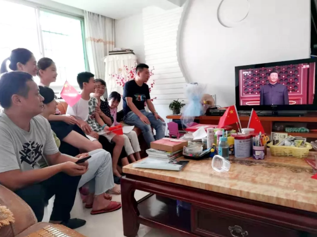 10月1日10点,福港集箱干部职工们纷纷打开手机、电脑和电视等媒体,或聚集在值班室、或团聚在家中、或驻足在旅途中,满怀深情地收看庆祝中华人民共和国成立70周年大会,聆听领袖讲话、观看盛大阅兵和群众游行,表达出无比自豪的爱国情。
