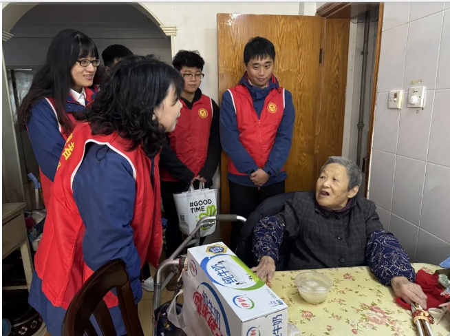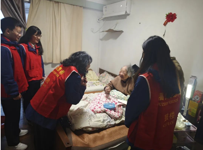 大家走进2位百岁老人家中,详细询问他们的身体、生活情况,亲切地拉着家常。“谢谢你们来看望我,我很开心!”两位老人满脸笑意,让志愿者们也心生暖意。