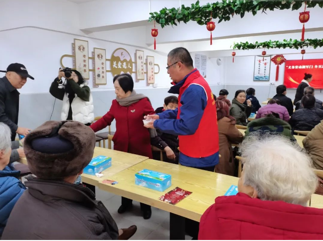“老人家,冬至安康!”党员同志们首先来到长者食堂,为社区20余位老人端上热腾腾的元宵,递送充满暖意的牛奶和点心,为社区空巢老人们提前过一个祥和快乐的节日。