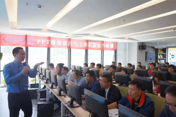 PPT全称PowerPoint,是现代企业人在工作中必然会使用到的一项现场演示工具,无论是对内进行工作计划或总结的汇报,亦或是对外进行企业文化或产业推广,都在极大程度上使用 PPT来进行展示。为了使员工更好的应用这项工具,并以此开展工作汇报,2019年4月18日,人力资源部牵头举办PPT商务设计和工作汇报培训。此次培训邀请福州大学MBA硕士、资深微软技术专家李兆雄进行授课,两港各部门主管级以上及文办人员共48人参加培训。