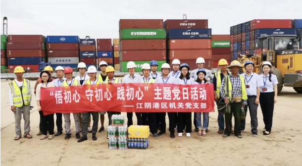 推进中心工作的主题党日——江阴机关党支部从推进中心工作出发,开展“关注安全、排除隐患”“送清凉、关爱一线员工”为主要内容的党日活动,既给生产一线的员工带来了关心慰问,又加强了施工现场的安全管理。