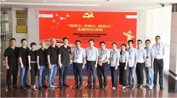 携手共建互学的主题党日——江阴港区操作部党支部与福建奔驰物流党支部共同开展主题党日活动,双方人员一同参观港区、观摩防台演练、专题学习座谈,还安排了先模结对子活动。