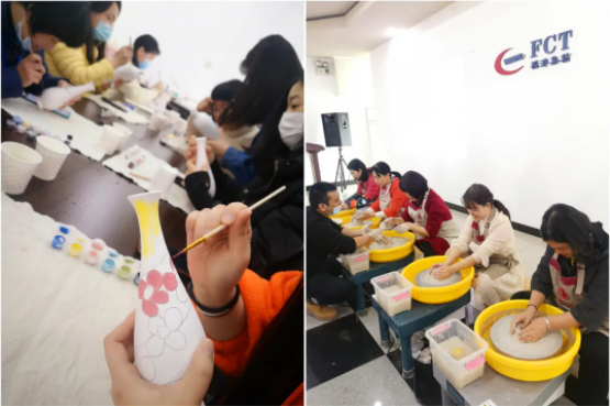 上午,一场精彩纷呈的艺术课堂“悦享陶艺”拉开了本次“三八”活动的序幕。在青州公司七楼多功能厅里,陶艺老师向女职工们讲解着陶艺的制作技巧,并亲自向大家演示陶艺制作中的拉胚过程。在老师耐心指导下,有的女职工在陶泥瓶上细心描画、上色,有的用拉胚机感触着泥巴在手中的变幻。由于大家都是初次制作,手法和技巧并不是很熟练,最终经过耐心的修改和想象力,大家都亲手完成了自己满意的陶艺作品。有的作品精致,有的十分富有创意,每件作品都展示出女职工心灵手巧、热爱生活的一面。