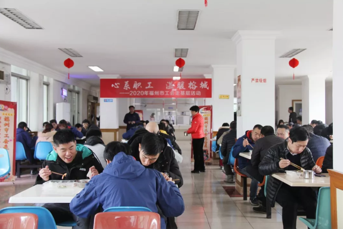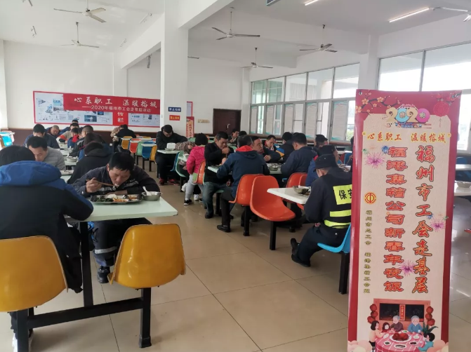 1月21日和22日,由福州市总工会组织的“心系职工、温暖榕城”的慰问活动再次为公司广大职工们送来了丰盛的年夜饭,职工们团聚在食堂里同吃年饭,其乐融融,年味十足。“好吃不过年夜饭,温暖不过组织情”,各项关爱活动让职工在心情舒畅和欢乐的气氛中感受“家”的温暖,增强了企业的凝聚力和向心力。此外,为喜迎传统佳节,福港集箱工会在节前为全体会员购买了丰富多样的年货,把工会组织的关怀和温暖送到职工心坎上。