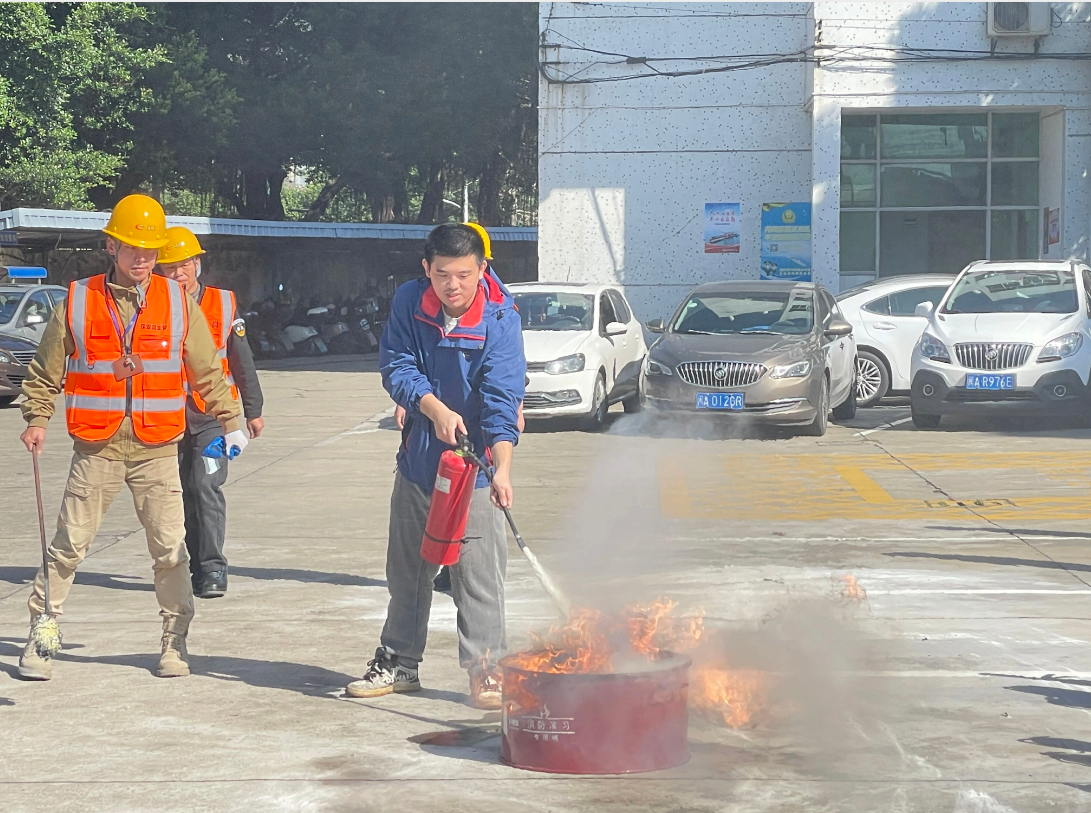 为巩固消防知识,消防专员随后开展了灭火器使用培训,内容包括切断火源、警戒疏散、吸附回收、初期火灾扑救及联动报警等关键环节。通过模拟着火场景,员工现场操作灭火器,有效提升了应对初期火灾的实操能力。