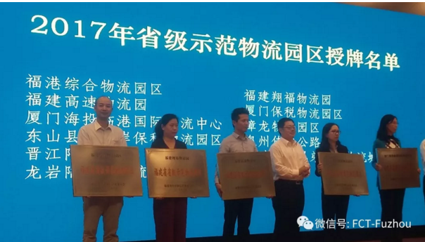 2018年4月26日,福建省物流协会第四届理事会第三次会议在福州召开。在进行的2017年省级示范物流园区授牌仪式上,福建福港综合物流园区被授予福建省示范物流园区。