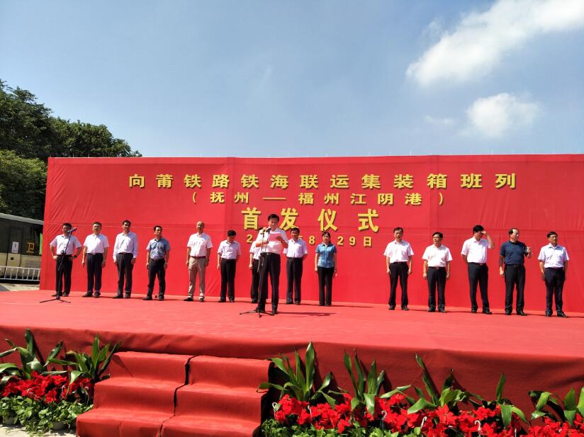 8月29日,向莆铁路“江西抚州-福州江阴港”海铁联运集装箱班列从抚州北站成功首发。上午10:30,装载20个国际标准集装箱、货值约100万美元的海铁联运外贸班列发车驶向福州江阴港。该班列货源以抚州市外贸企业出口的体育器材、江铃汽配和婴儿用品等为主,将经福州港江阴港区疏运往欧州、非洲和中东等地。