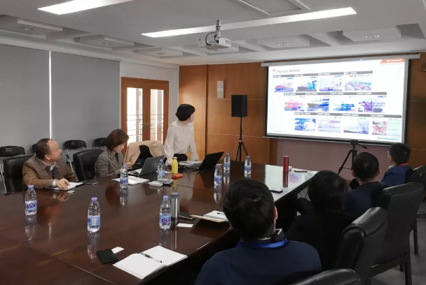 3月26日,韩国HYUNDAI MOVEX李升美部长一行来访福州港江阴港区,就智慧港口信息化方面进行交流。调研组与蒋锋总经理助理、公司操作部、资讯科以及福州港务集团资讯部、迅腾软件开发部等相关方就码头自动化、智能化、远程控制等方面进行了深入地探讨。HYUNDAI MOVEX中国部郑英子经理详细介绍了HYUNDAI MOVEX公司开发的U& Terminal生产系统在堆场自动策划、机械智能调度、集卡指令分配等方面的先进解决方案,同时也针对我方提出的技术问题进行详细的解答。