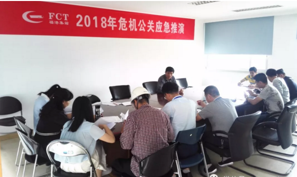 为提高公司在全媒体时代应对突发危机事件的处置能力,确保公司美誉度及安全,近日,由公司行政部牵头,安质部、江阴港区操作部等相关部门联合开展2018年度危机公关处置预案桌面推演。推演现场模拟了危险品货物在港内运输中由于司机操作不当导致集裝箱挤破且箱体跌落路面造成泄漏,事故信息不当扩散,公司随即启动危机公关应对预案。