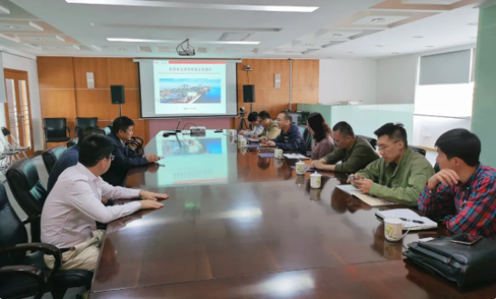 福港集箱江阴港区操作总监梁卫星陪同调研组察看港区生产情况,并向调研组详细介绍了江阴港区1-7#及14#泊位各功能区域、航线情况、生产经营情况、海铁联运业务现状及未来发展规划。随后,调研组一行在四楼会议室开展了座谈会。