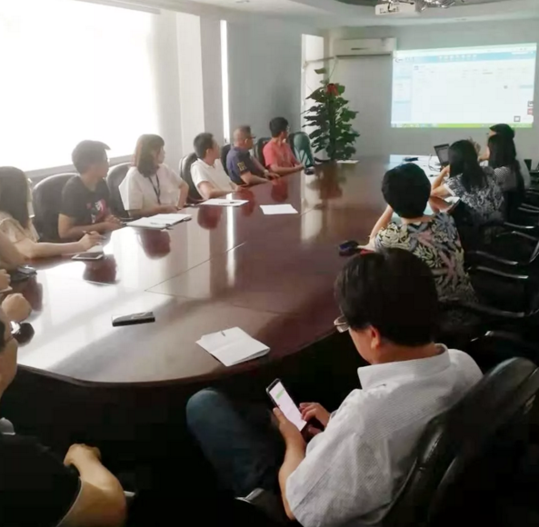 6月18日资讯科于青州三楼、江阴四楼会议室开展“OA项目管理模块培训使用”的两港视频会议。