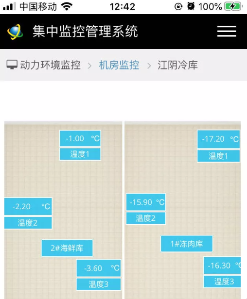 温湿度监控系统采用先进的温湿度传感器,可采集每个库房的温湿度实时数据,并可通过电脑端、手机端(安卓、IOS)随时随地查看当前温湿度及历史温湿度曲线等。
