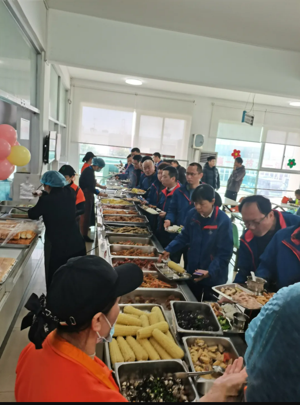 活动现场秩序井然、氛围温馨。员工在有序取餐的同时,也享受到附赠的点心与饮品,笑语声中洋溢着“家”的暖意。一线员工表示:“热乎的饭菜和服务让人倍感暖心,疲惫一扫而空。”