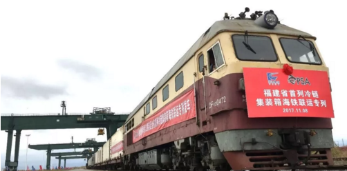 值得一提的是,2017年11月8日,福建省首列冷链集装箱海铁联运专列在江阴港区发车,装载着进口红酒和冻鱼的8个冷藏集装箱,从江阴港区铁路支线驶往内地。此举不仅开启了福建省内冷链物流运输新模式,更为江阴港区在“一带一路”建设中创造陆海统筹新发展、实施港口供应链工程,注入了全新动力。