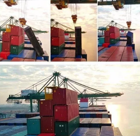 12月24日凌晨,“达飞林肯”轮如期靠泊。据现场勘察,斜落箱顶端在最低潮时离7#QC小车轨道仅2米左右,涨潮后潮位将上涨,压缩操作空间,作业难度将加大。时间紧迫,全体作业线员工通力协作,最终促使此次接卸操作从前期的搭台、挂钢丝绳、换吊钩到完成起吊,总计用时不到1小时30分钟,圆满完成了“梯度接卸预案”,赢得了客户的赞赏。