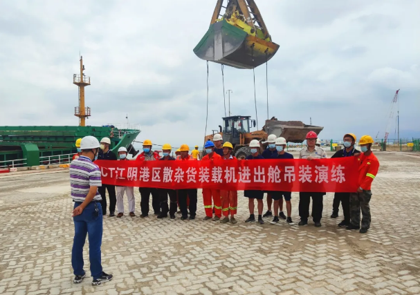 为贯彻2020年HSSE“守规章 重落实 防事故 保安全”的安全生产主题,切实把安全操作演练落实到基层班组。5月27日,由江阴港区操作部主办,安监科、技术部及散杂货外协合作方共同协助开展HSSE主题活动即对散杂货装载机进出舱吊装演练。