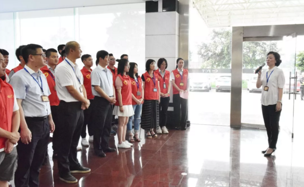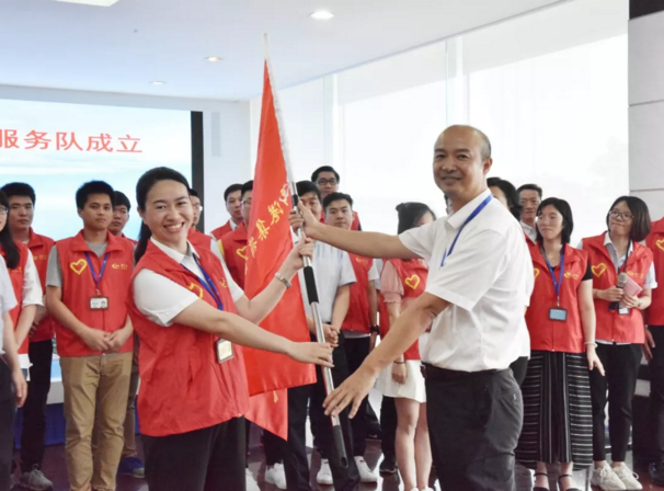 奏响庄严的国歌、宣读郑重的章程 ,在热烈的气氛中,郑明总经理为“福港集箱青年志愿者服务队”授旗。30余名志愿者集体宣誓,表达了志愿者们爱心服务、奉献有我的承诺。公司党委陆玉蓉书记在仪式上作了热情洋溢的致辞,代表公司党委向志愿者服务队的成立表示祝贺,向积极响应和热情参与的全体志愿者表示感谢!她希望,党有所指,团有所向,福港集箱青年志愿服务队要不忘初心,牢记“奉献、友爱、互助、进步”的精神,服务员工,服务企业,奉献社会。要在服务队的工作机制、项目安排和队员素质提升等方面下功夫,为提升企业文化软实力做贡献,努力打造成合资企业党建带团建的新品牌。