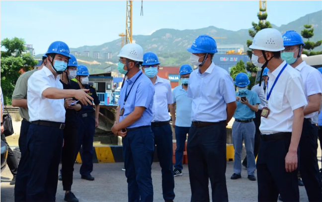 2020年6月18日上午,福州市副市长杭东率调研组莅临福港集箱青州港区,就口岸疫情防控相关工作进行调研。福州港务集团有限公司副总经理郑明、福港集箱总经理叶关勇、副总经理蒋锋等陪同调研组视察港区。