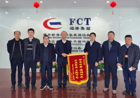 2021年2月3日,福建三峡海上风电产业园总经理金海军、副总经理许晓敏携福建福港国际物流有限公司书记兼执行董事陈忠谷、副总经理刘予一行莅临福州港江阴港区开展海上风电项目业务交流,并向福港集箱赠送锦旗。