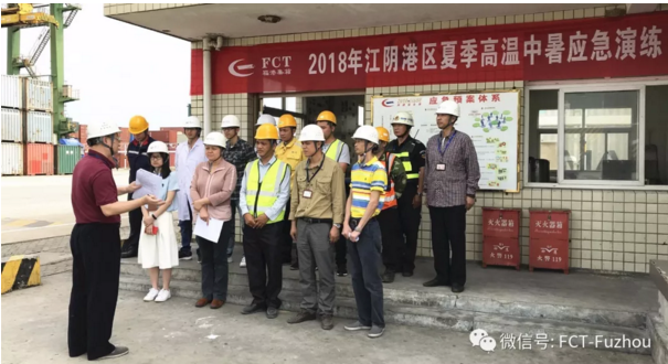 进入初夏,为预防公司一线员工在高温气候环境下作业中出现中暑现象,确保中暑事件初发时相应的应急处理及救援工作能夠及时顺利开展,5月10日上午,由行政部牵头,安质部、江阴港区操作部、技术部在码头前方待工区开展了“FCT 2018年夏季高温中暑应急演练”。