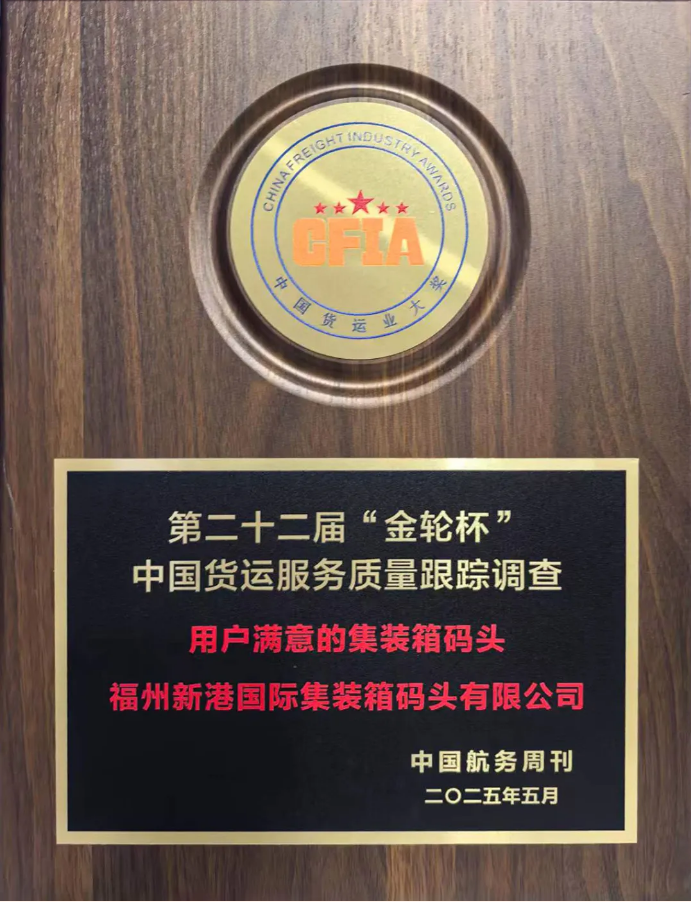 5月21日,在第二十二届“金轮杯”中国货运服务质量跟踪调查活动成果发布仪式上,福州新港国际集装箱码头有限公司(以下简称“福港集箱”)再次斩获“用户满意的集装箱码头”殊荣。这已是福港集箱第20次揽获此奖项,这份横跨行业发展周期的纪录,正是其深耕港口服务领域,以 “五星服务” 打造行业服务标杆的实力印证。