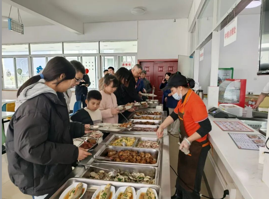 中午,大家在食堂共进午餐,聊着上午的见闻,笑声不断,其乐融融。
