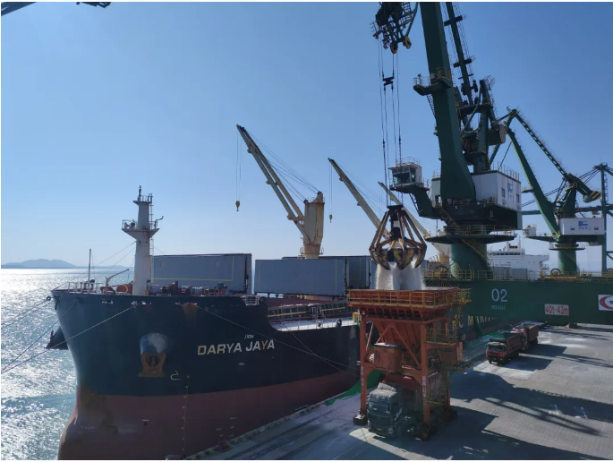 1月25日15时30分,装载着61580吨工业盐的“贾雅”号轮稳稳停靠在江阴港区。在完成登临联检、水尺计重等准备工作后,当日18时,港区迅速开展卸船作业。现场机器轰鸣,各项工作有条不紊,奏响了一曲迎接新春的劳动赞歌。