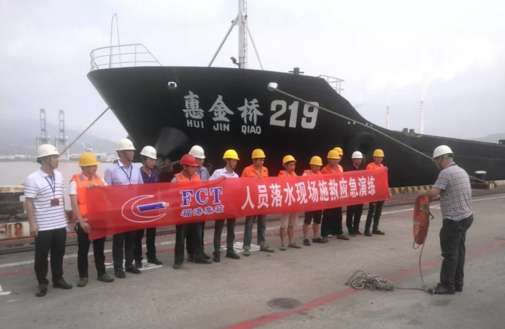 下午3:30,参与演练的各工种有关人员集中在码头前沿“惠金桥219”轮护坎边,受演练总指挥委托,首先由庄宗德经理助理进行演练部署,同时他还重点讲解了救生圈抛投的技术要求和安全注意事项,使码头前沿作业人员清楚救生圈放置的位置,救生圈应被抛在落水人员的下游方向,无流有风时应抛在落水人员的上风方向,救生圈的抛放不可打到落水者等要领,且要求有关科室定期对救生圈进行检查,保证每台桥吊海侧位置救生圈的完好。3:40,模拟落水施救演练正式开始,在演练现场解说员的吴鸿源科长助理现场指挥解说中,观摩人员获悉:作业科员工(第一发现人)大声叫喊“有人落水”,随后看头、装卸工和带缆工等人员根据《人员落水现场施救应急预案》,立即向模拟落水点抛投救生圈,并由现场指挥员立即向监控室、中控室汇报,并讲明落水部位、落水人员数量,落水人员有关情况。在落水者抓住救生圈后,一起将救生圈和溺水者往岸上拉回。在救起落水者后,送往医院进行深入检查和救治。演练人员积极参与演练,体验如何施力抛放救生圈,体验共同收拉救生索等各种动作。演练全过程紧凑、有序,充分体现福港集箱作业线员工较强的团队意识及训练有素、能打硬战的优良作风。庄宗德经理助理对演练全过程进行总结点评,安质部高科长也对抛放救生圈的细节如施救人员不要踩到救生圈的救生索(绳)上等问题进行了校正。随后在场观摩及演练人员对本次演练进行评估。