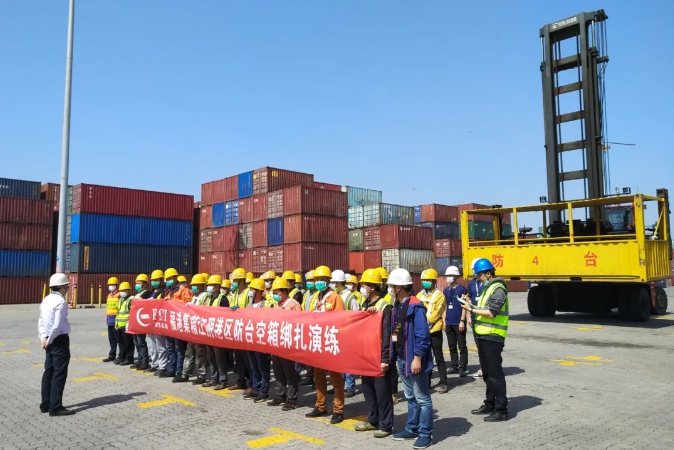 为贯彻落实公司HSSE精神,致力于打造一个“健康、安全、保卫、环保”的港区。4月17日,由江阴港区操作部主办,公司安全工作小组成员、公司防台工作小组成员、安监科、技术部共同协助开展空箱绑扎防台演练。