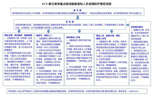 三、出台《FCT-韩日美等重点航线船舶登轮人员疫情防护管控流程》