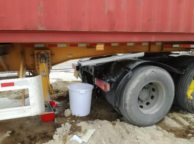 12月 22日上午9:30安监员按监管方案进行堆场巡查时,发现“穆勒晨曲”轮同一票另一个危险货物集装箱也发生泄漏现象,立即上报福港集箱专项工作小组并立刻采取调整场位、干砂围堵的应急处置措施。