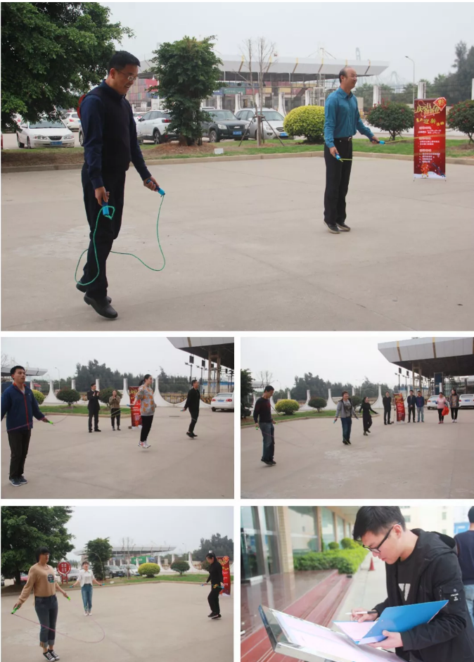 活动一开始,就收到了公司各部门同事的踊跃报名。活动中,大家你追我赶,绳彩飞扬。虽然有的同事汗流浃背、精疲力竭,但大家都能够坚持跳完。短短不到两个小时的时间里,共有48人次参与了本次比赛。期间,福港集箱总经理郑明及总经理助理蒋锋等一些领导也参与其中,与民同乐,作表率,小试牛刀,送祝福。