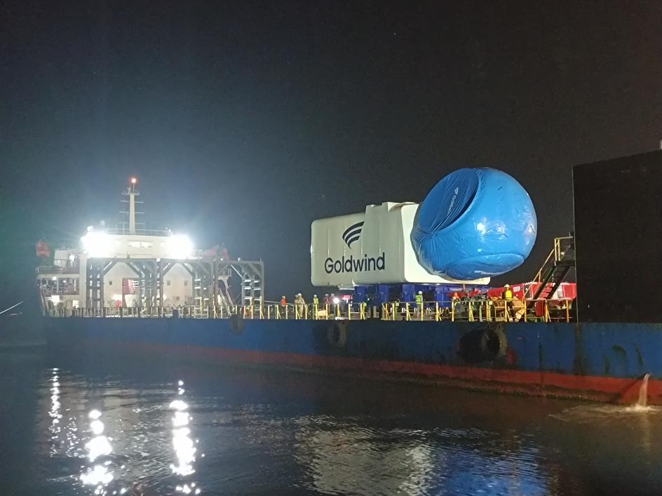 6月全球首台16兆瓦超大容量海上风电机主机在江阴港区成功起运