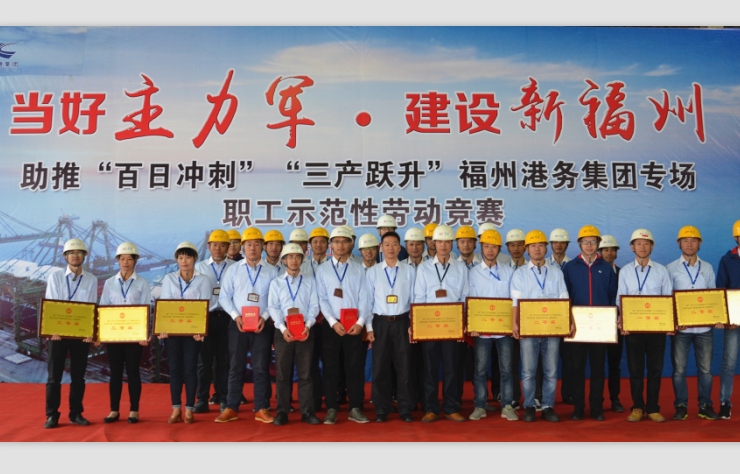 10.11由福州市总工会主办的“喜迎十九大·建设新福州·当好排头兵”职工示范性劳动竞赛(福州港务集团专场)活动在福港集箱江阴港区火热开幕。当天进行了岸桥技能、船舶单杆作业效率、叉车作业和维修保障4个项目的年终总决赛。