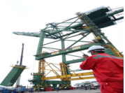 9.30青州港区1台集装箱装卸桥到岸,是目前福州港闽江内港口起重量最大的集装箱装卸桥。