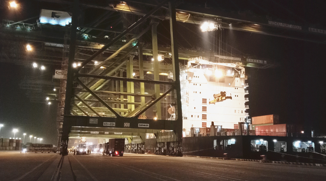 1.27江阴港区首次完成国内调拨空箱船边直提业务。