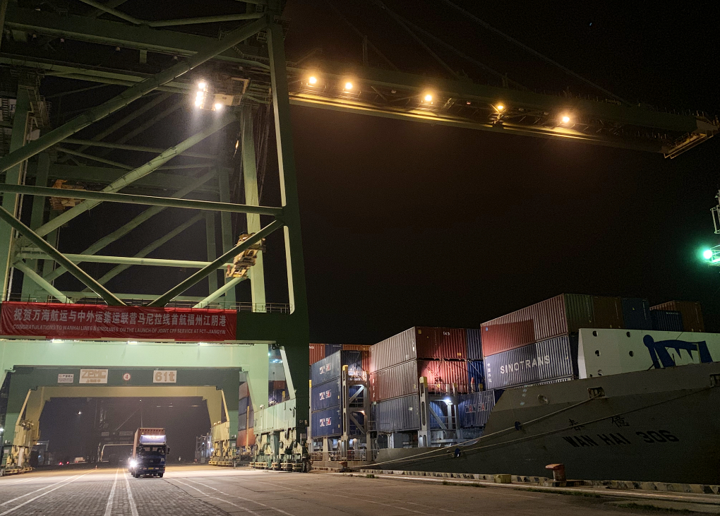 7.13中国-印尼“两国双园”贸易先行首批进口冻柜运抵江阴港区,标志着印尼·雅加达——中国·福清“两国双园”海上大通道正式开通