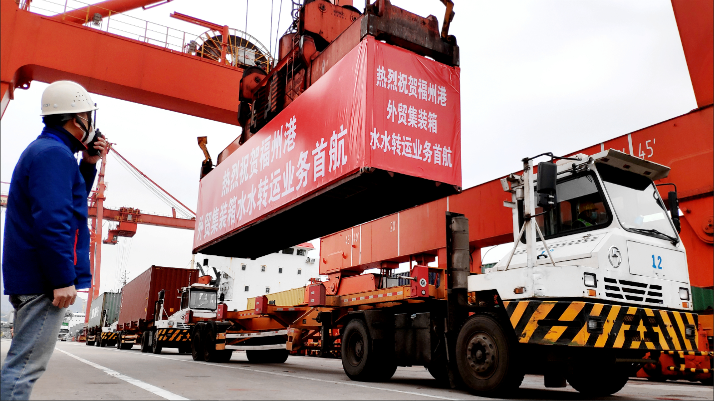 3.5福州港外贸集装箱水水转运业务模式开启。首批134标箱重柜由昊海航运经营的外贸内支线船舶“德胜6”V.A055承运从青州港区通过新模式转运至江阴港区,后经美西线、东南亚线等干线船舶出口