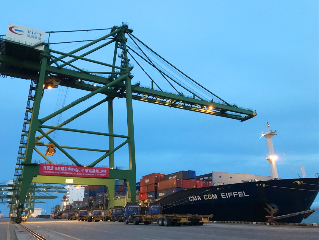 4月奇瑞商品车成功实现外贸滚装出口首航,福港集箱整车出口服务能力取得实质性突破。同期,福州港首个20万吨级集装箱码头——江阴港区6—7号泊位扩能工程(一期)圆满竣工。 -